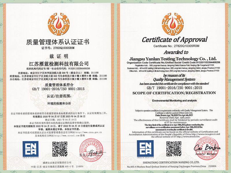資質(zhì) :CMA 環(huán)境檢測(cè)資質(zhì), ISO14000體系認(rèn)證,ISO9000質(zhì)量管理體系認(rèn)證